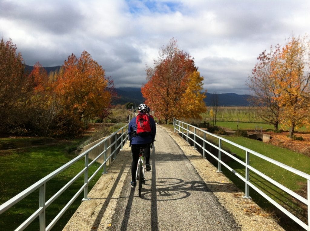Tour de Vines is the only provider of small group, fully guided cycling tours on the iconic Murray to Mountains Rail Trail. This exclusive cycling tour is an all inclusive, small group weekend, complete with meals, accommodation, local guide, special wine tastings, gourmet food, luggage transfers and transport. Group tours depart select weekends from October to May and do book out well in advance. Take the stress out of your weekend away enjoy this wonderful easy cycling escape in the gourmet North East Victoria region, along the famous Murray to Mountains Rail Trail.