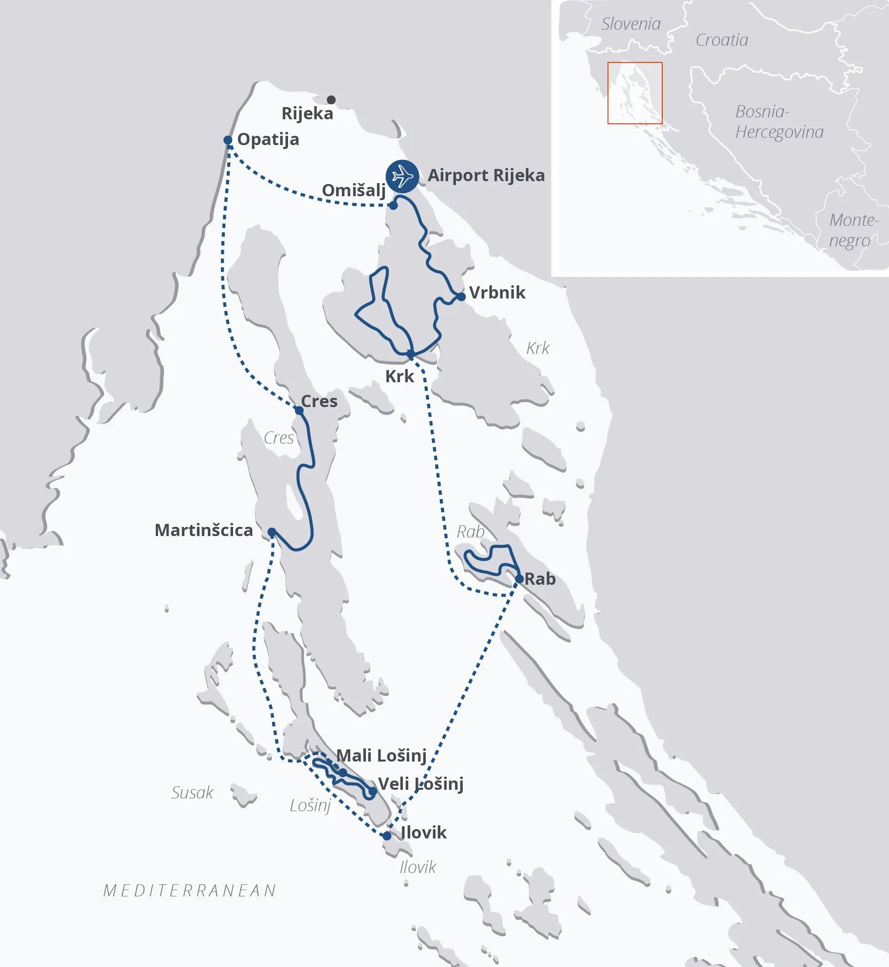 Uncover the hidden beauty of Croatia’s northern Adriatic coast on our Kvarner Bay Croatia Cycling Tour. This 8-day Croatia sail and cycle tour departs from Omišalj and takes you island-hopping by e-bike across the scenic Kvarner Bay Islands. Pedal through dramatic landscapes and peaceful villages on islands like Krk, Cres, Lošinj, and Rab. Along the way, enjoy guided rides over hills and through vineyards, with swim stops in crystal-clear bays.
